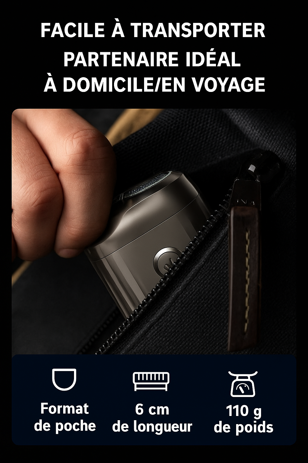 Grâce à son format compact et son design sans fil, il se glisse facilement dans une poche ou un sac.